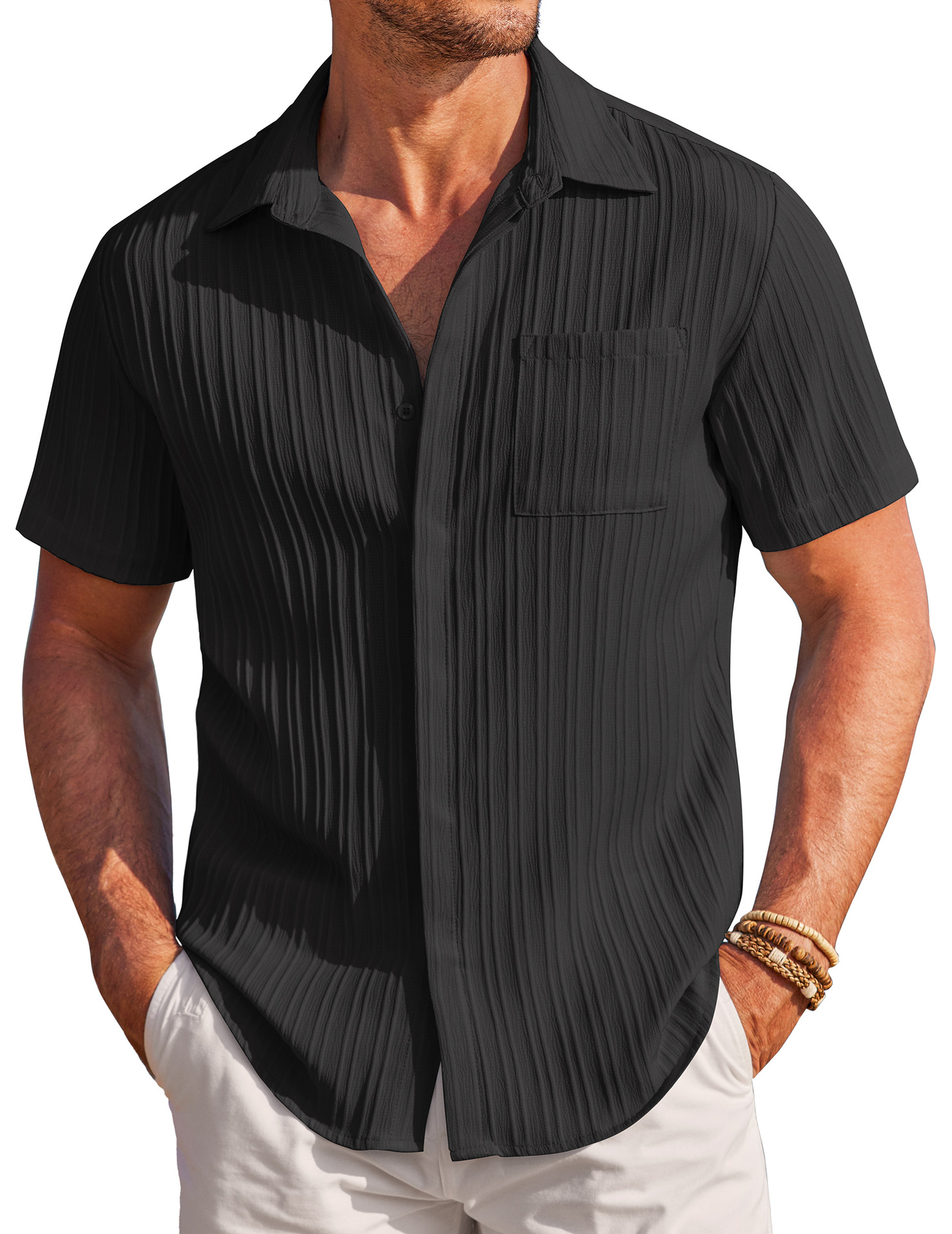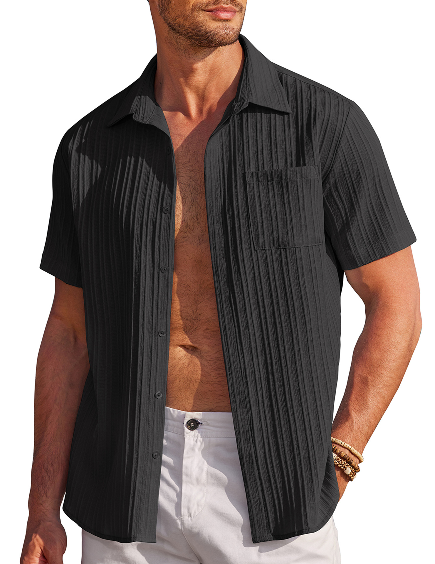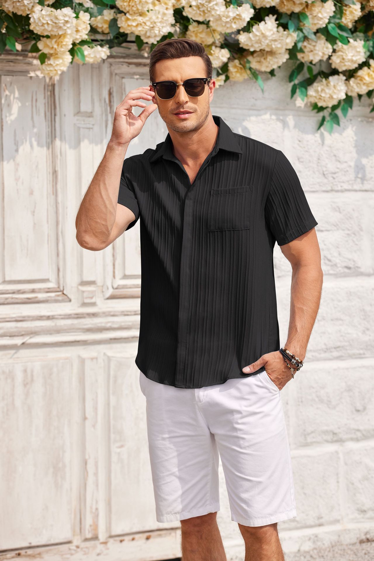 Men Shirt Top Cross Border Short Sleeve Cardigan