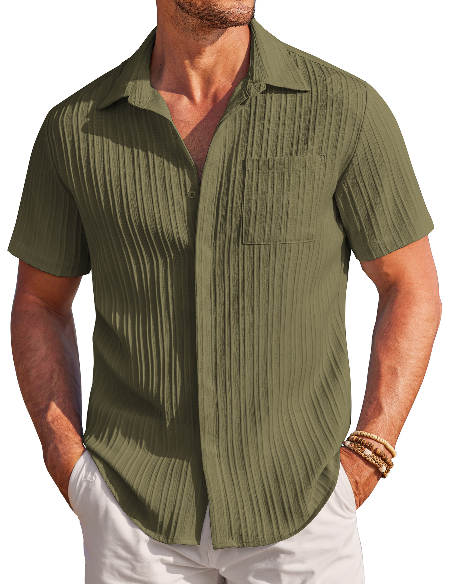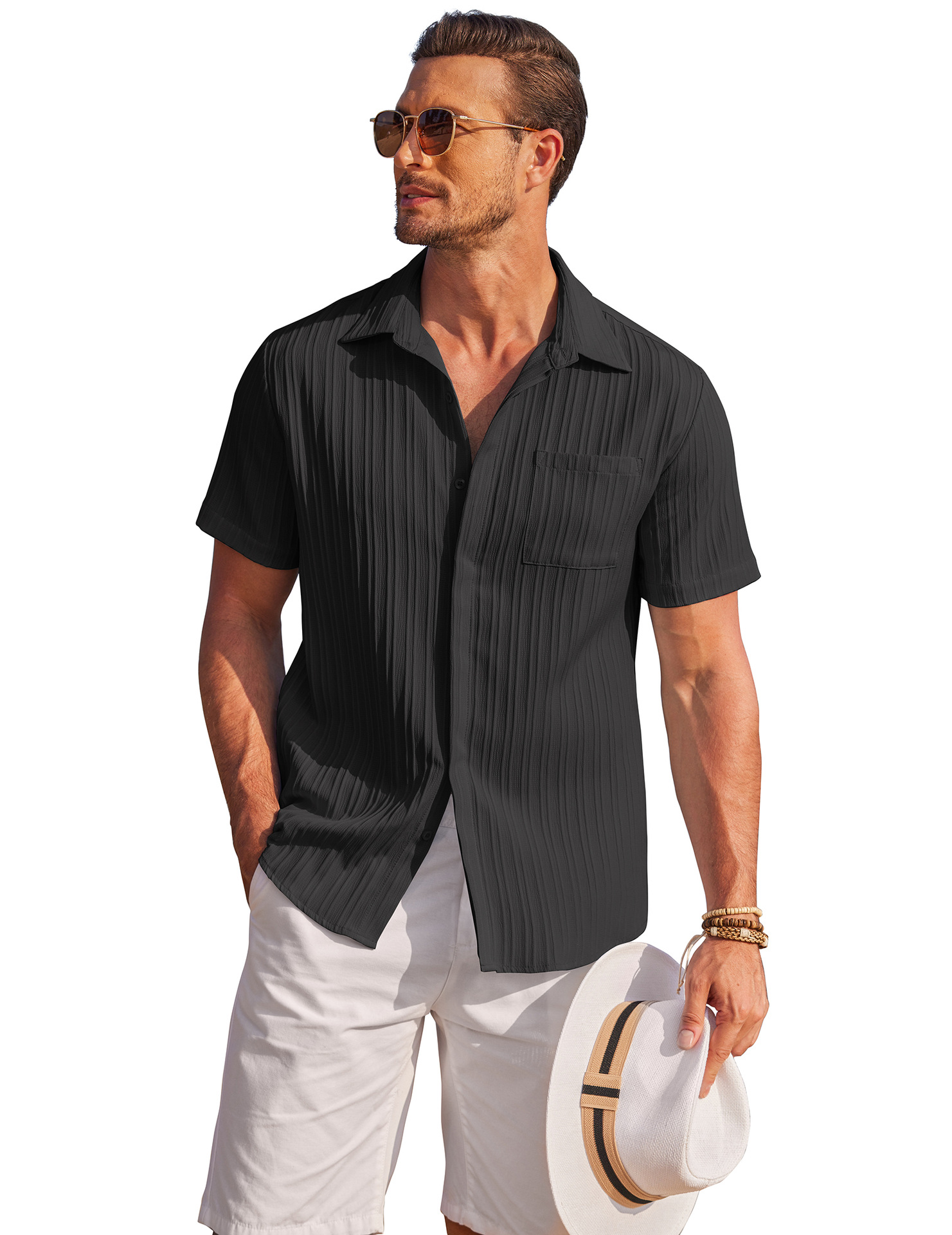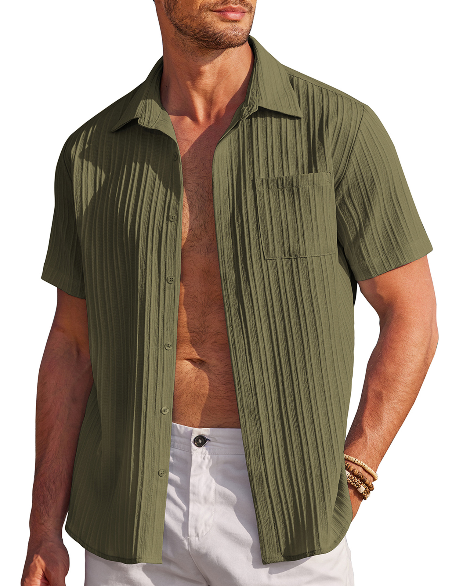 Men Shirt Top Cross Border Short Sleeve Cardigan