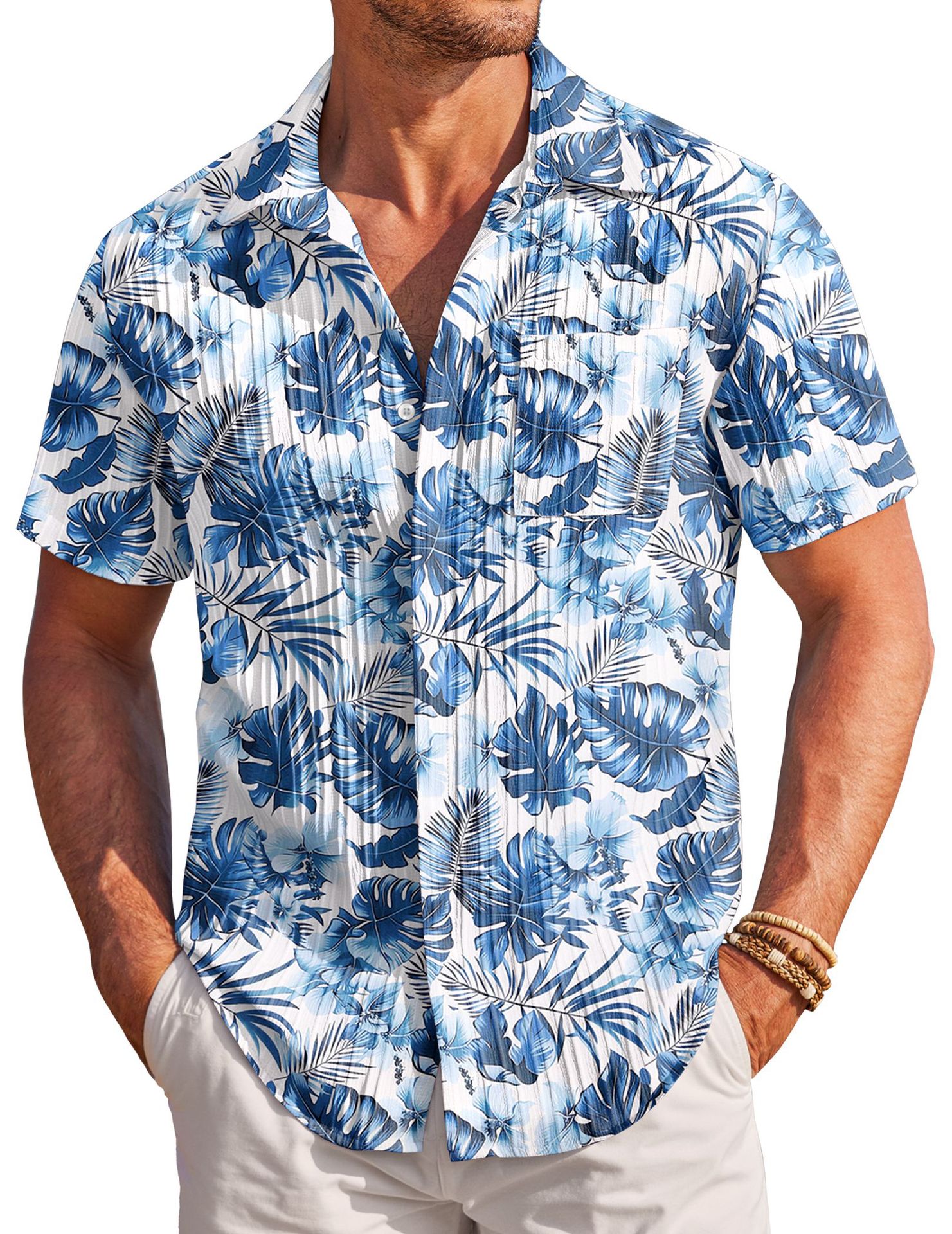 Color: White base with blue leaves, army green