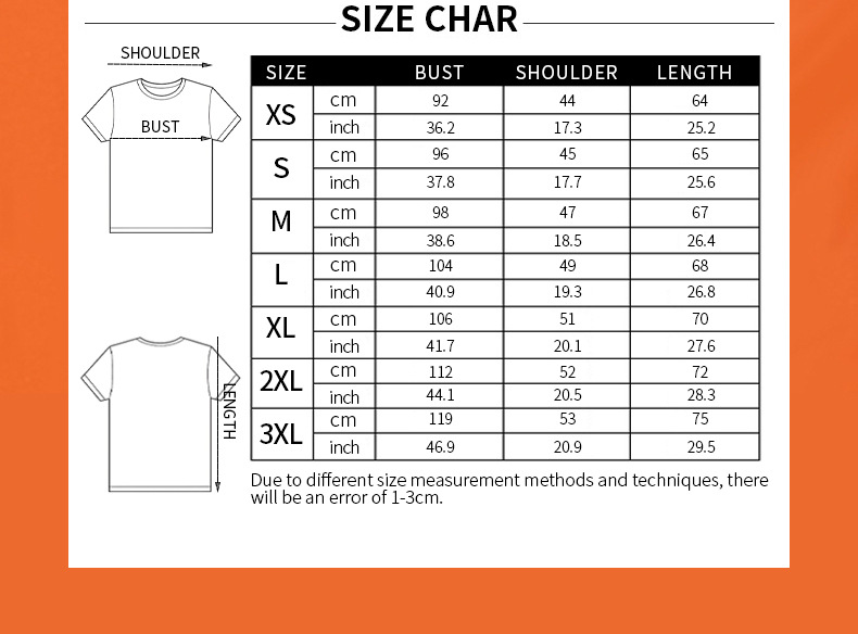 Sizes: XS, S, M, L, XL, XXL, XXXL